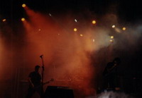 Los conciertos de esta jornada de presentación se celebraban en el escenario secundario, patrocinado por la película la «Reina de los Condenados». Nada más llegar allí estaban acabando su actuación Los Rabanes, grupo de Panamá que combinan el rock con ritmos como el ska, hip hop, reagge etc…¦ No nos dió tiempo a meternos en su rollo, pero la gente se lo estaba pasando en grande. Tras Los Rabanes salieron a escena Ratones Paranoicos, grupo argentino que parecen una fotocopia de los Rolling Stones, con 16 años de carrera a sus espaldas. Tenía por ello bastantes ganas de ver como se desenvolvían, pero Stones sólo hay unos, y su rock era muy muy simplón. Además su batería era muy paquete, y para colmo el bombo sonaba excesivamente alto, lo cual era muy desagradable. Una pena. La fiesta continuó con unos grupos de Jerez, a los que dieron la oportunidad de tocar cuatro canciones cada uno. Recuerdo positivamente unos que se llamaban Nadine, si no oí mal, bastante potentes. Para acabar Panteón Rococó, grupo mexicano con un rollo muy parecido al de Ska-P, que también sacó unos botes al respetable, y finalizaron Los Ratas, grupo canario establecido en el País Vasco que me recordaron mucho a los extinguidos Def Con Dos, por su rollo de tres cantantes, guitarras fuertes y contundentes bases. No vimos acabar su actuación por que nos fuimos a descansar, el día siguiente prometía, aunque la fiesta continuaba en los dos escenarios de baile.